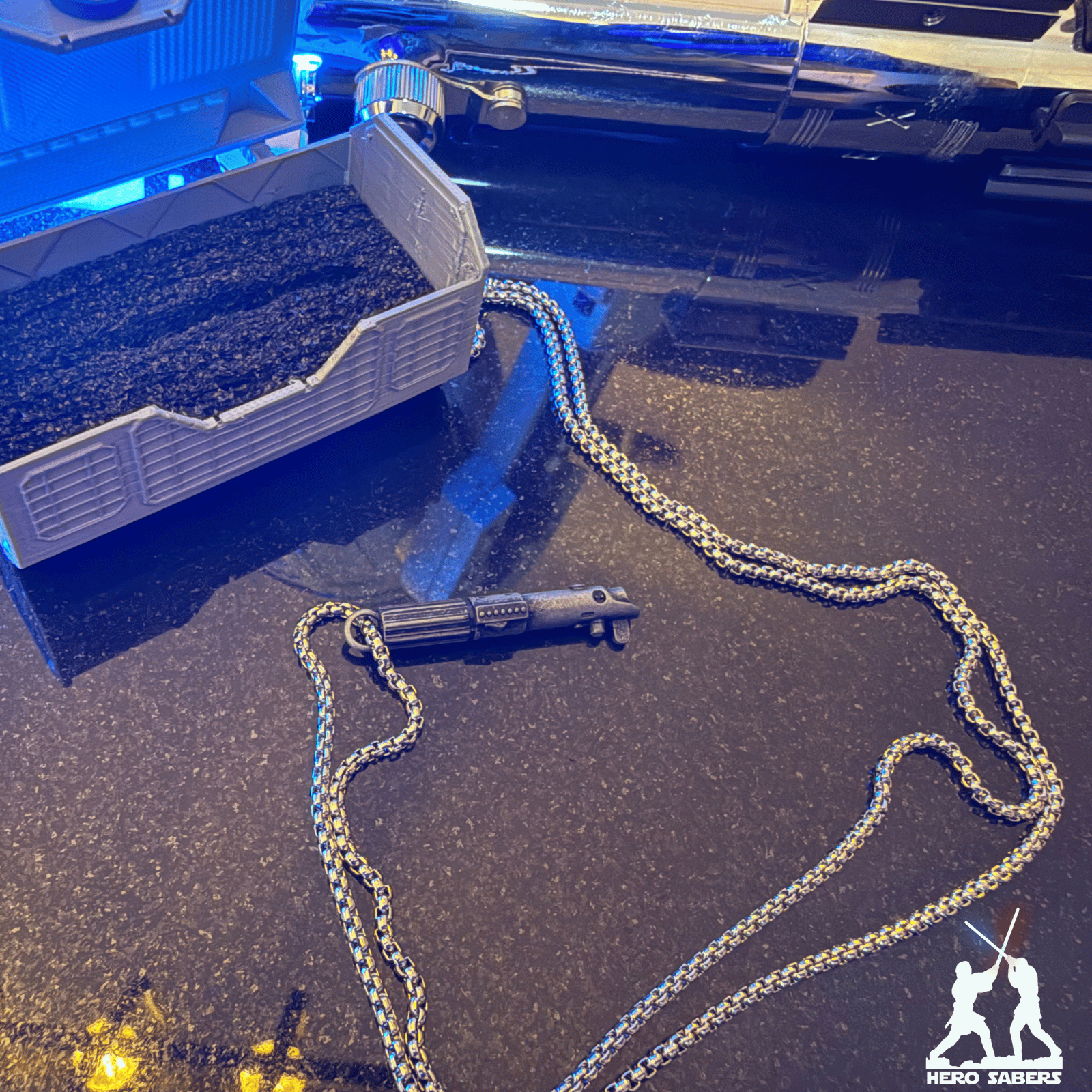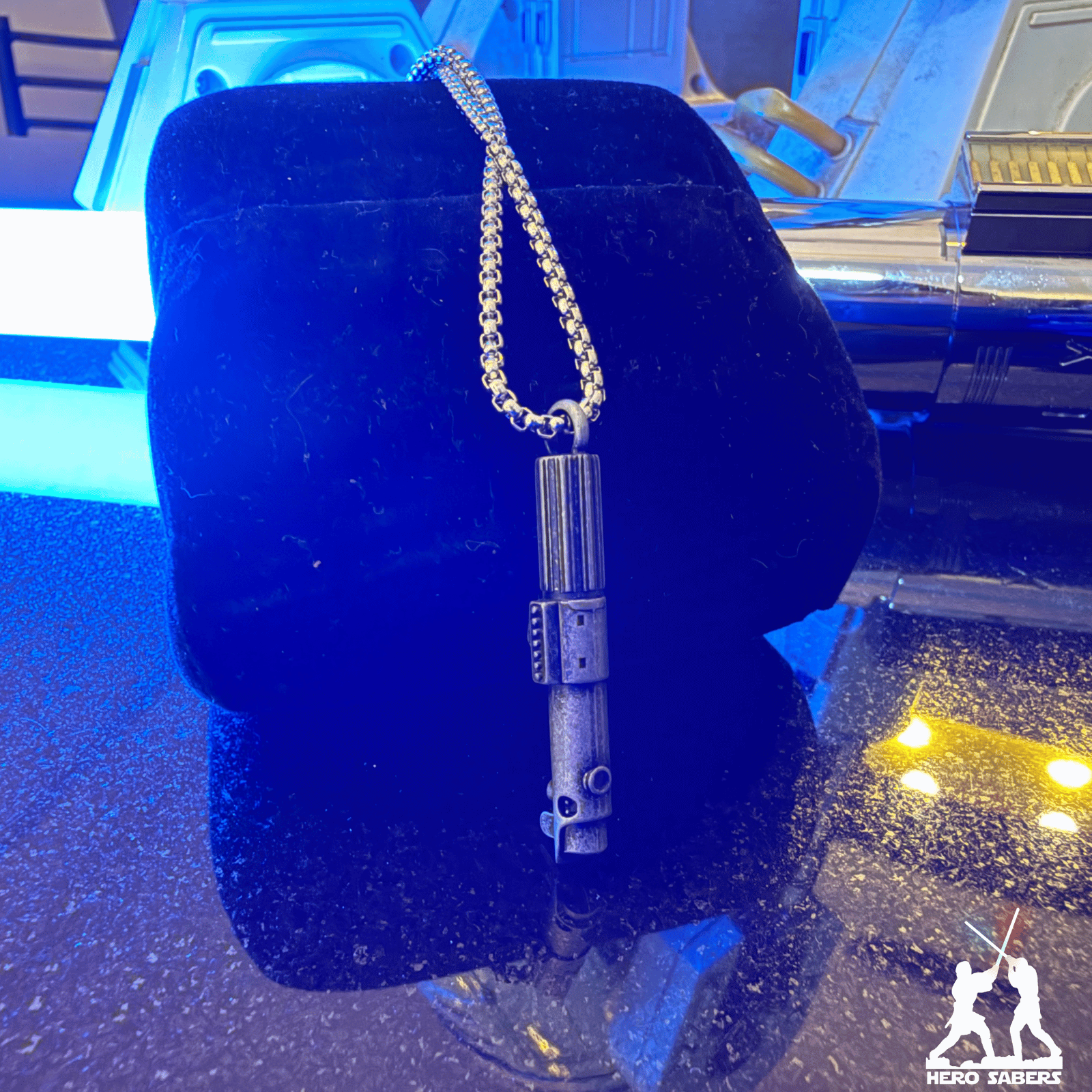 El legado de los Skywalker en tus manos. ⚔️ Este Collar de Sable de Luz es una réplica premium de la empuñadura de Anakin Skywalker, fabricada en metal macizo con cadena de acero inoxidable.