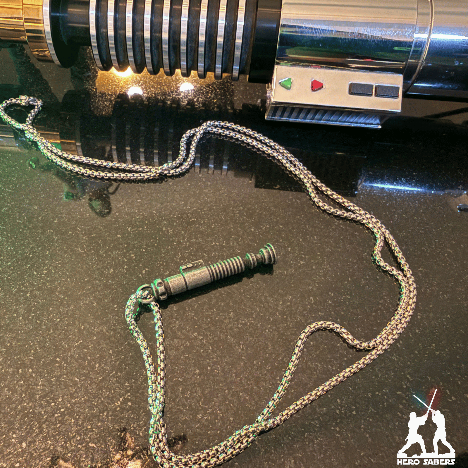 Siente el retorno del Jedi en cada detalle. ⚔️ Este Collar de Sable de Luz es una réplica premium de la empuñadura de Luke Skywalker,