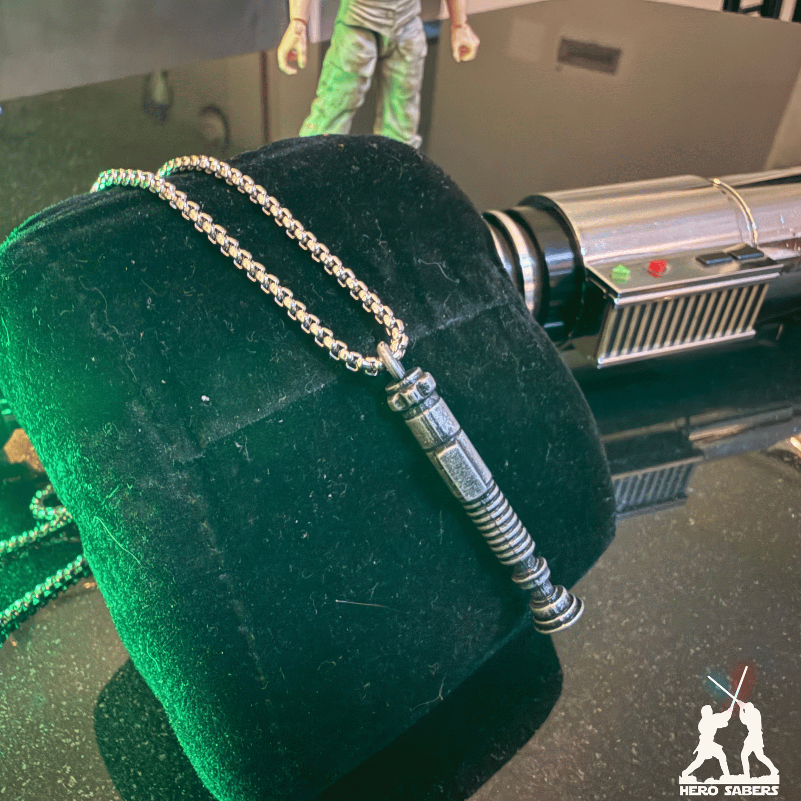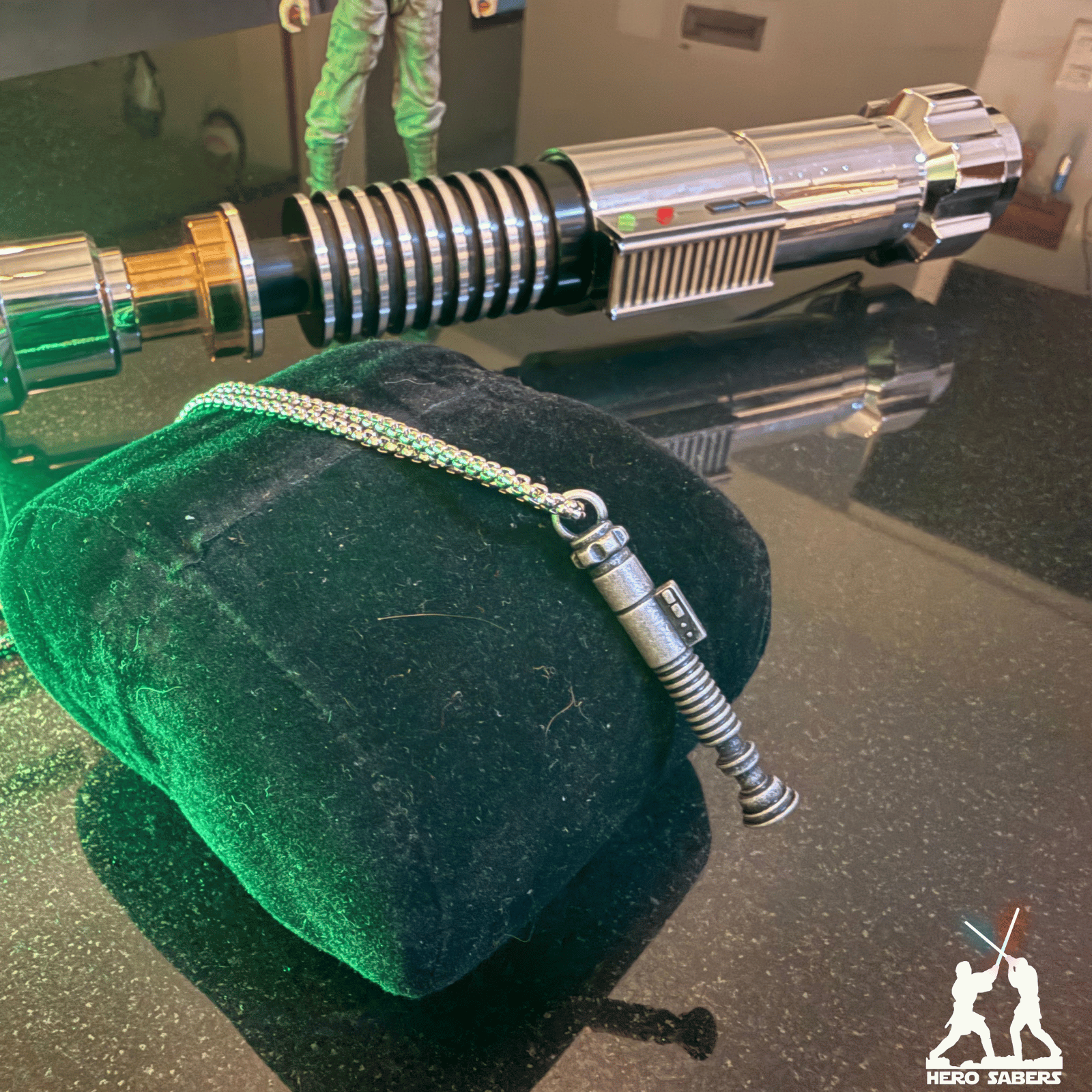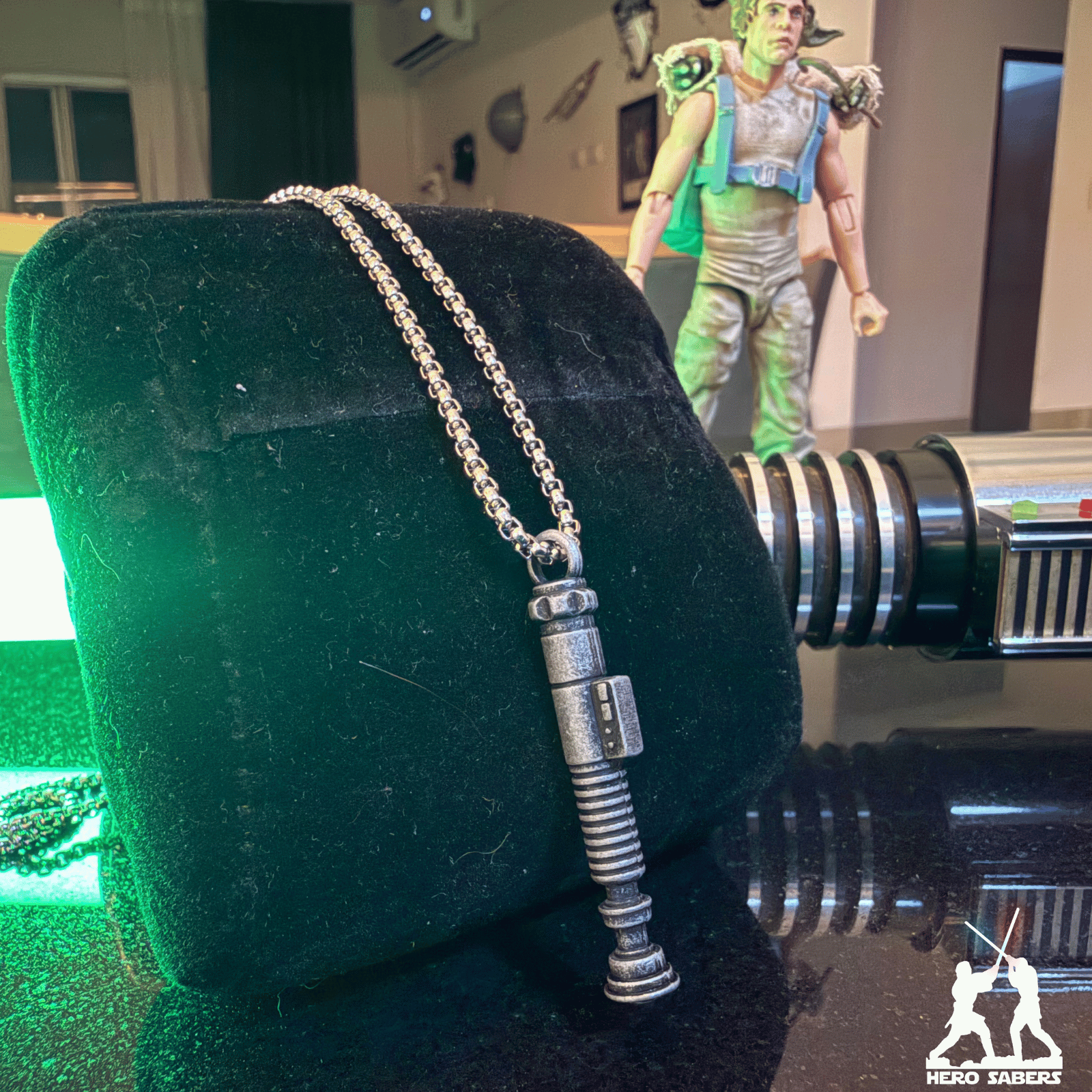 Completa tu destino como Caballero Jedi. 🌌 Este Collar de Sable de Luz es una réplica detallada de la empuñadura construida por Luke Skywalker, un diseño icónico que marca el regreso de la luz a la galaxia. ✨