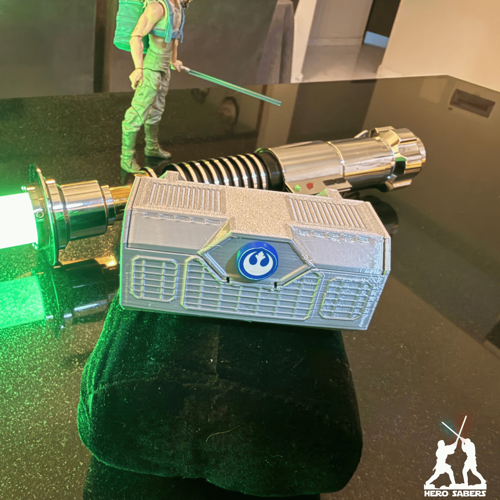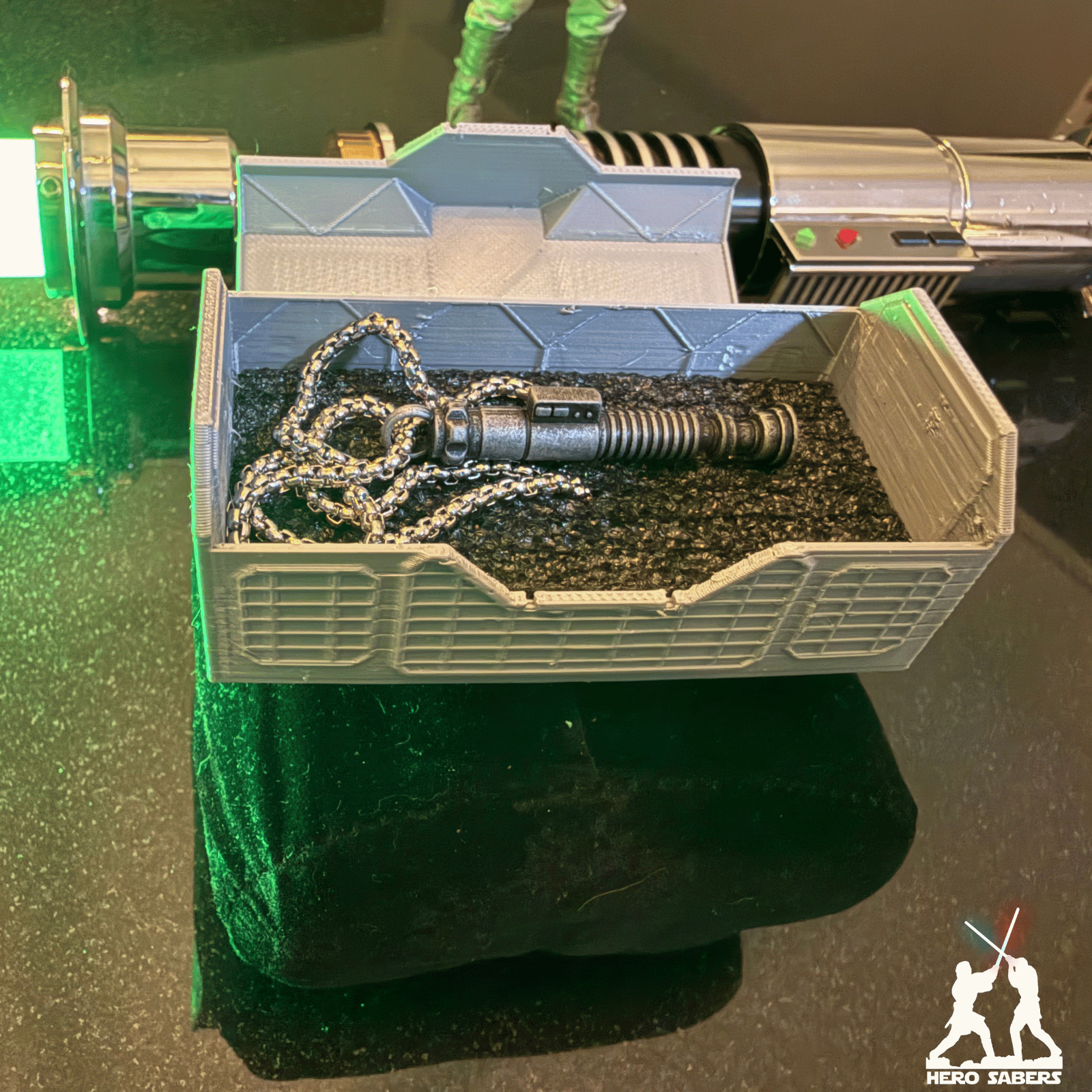 • Réplica del Maestro Jedi: Dije de 6.5 cm con el característico diseño «cuello delgado» de la empuñadura de Luke.