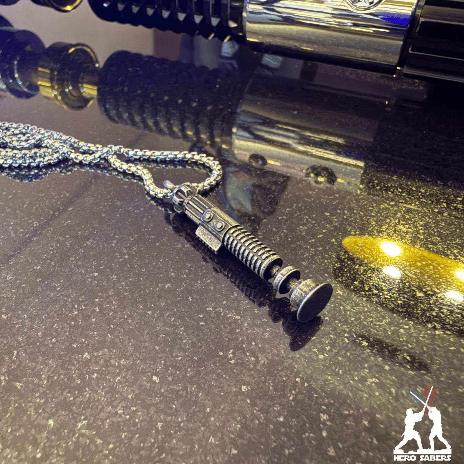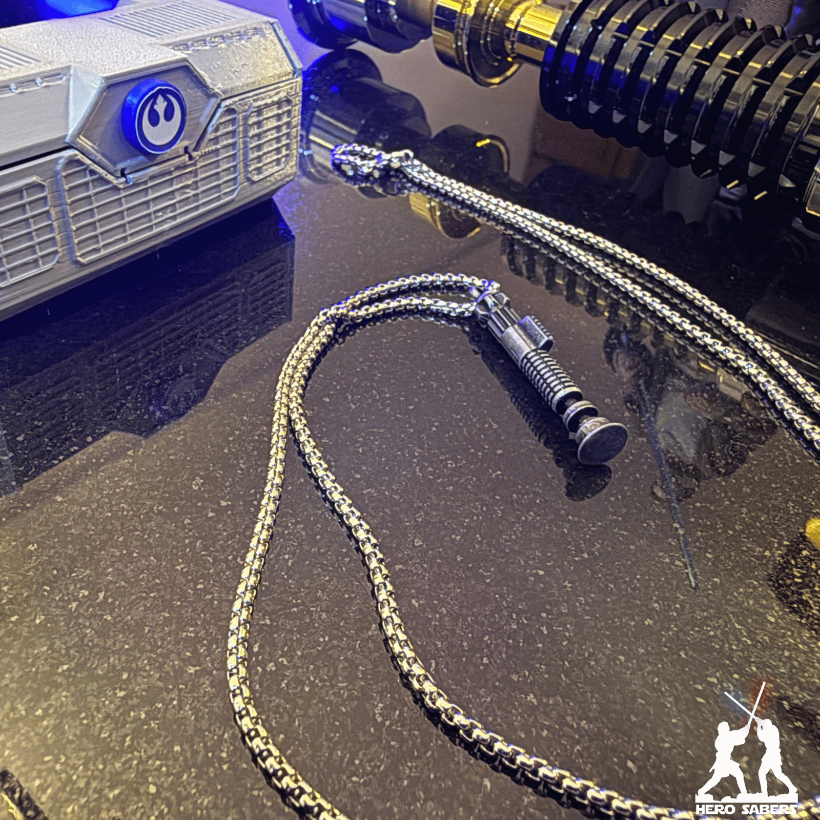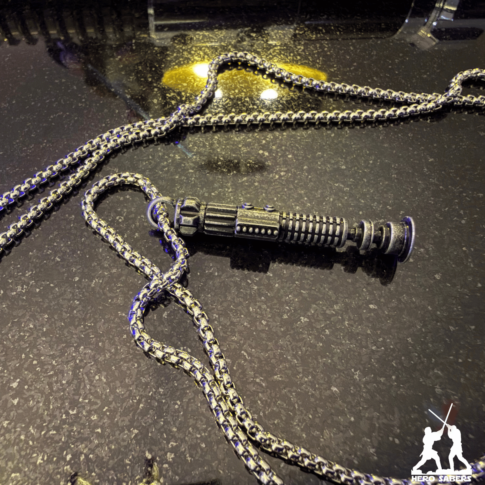 Un arma elegante para una era más civilizada». 🌌 Este Collar de Sable de Luz es una réplica meticulosa de la empuñadura utilizada por el legendario Maestro Jedi Obi-Wan Kenobi.